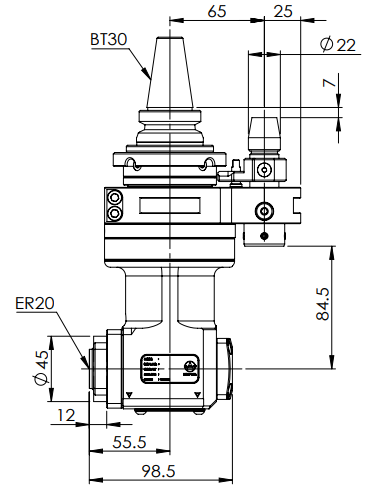 ◎BT30-ER20 90° Aluminum Angle Head (AHM Type-Internal Nut)