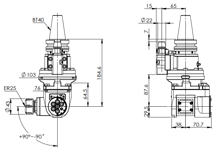 ◎?BT40-ER25 Universal Angle Head (AHG Type)