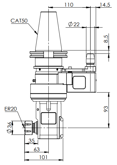 ◎?CAT50-ER20 90° Angle Head-Compact (AHD Type)