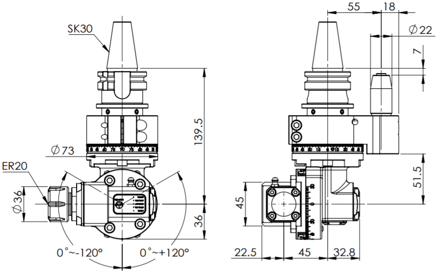 ◎ SK30-ER20 Light Angle Head-Universal (AHL Type)
