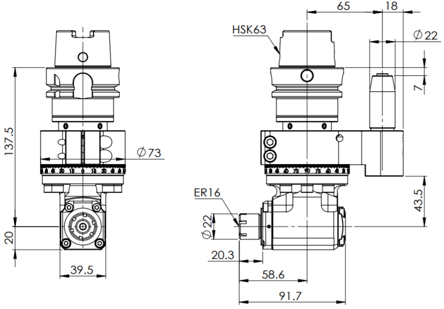 ◎ HSK63-ER16?Light Angle Head (AHL Type)